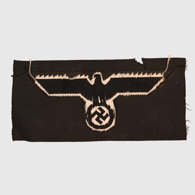 A mint unissued condition Bevo cut from the roll, white on black breast eagle for the black Panzer wrap over tunic, the white on black was the early type.