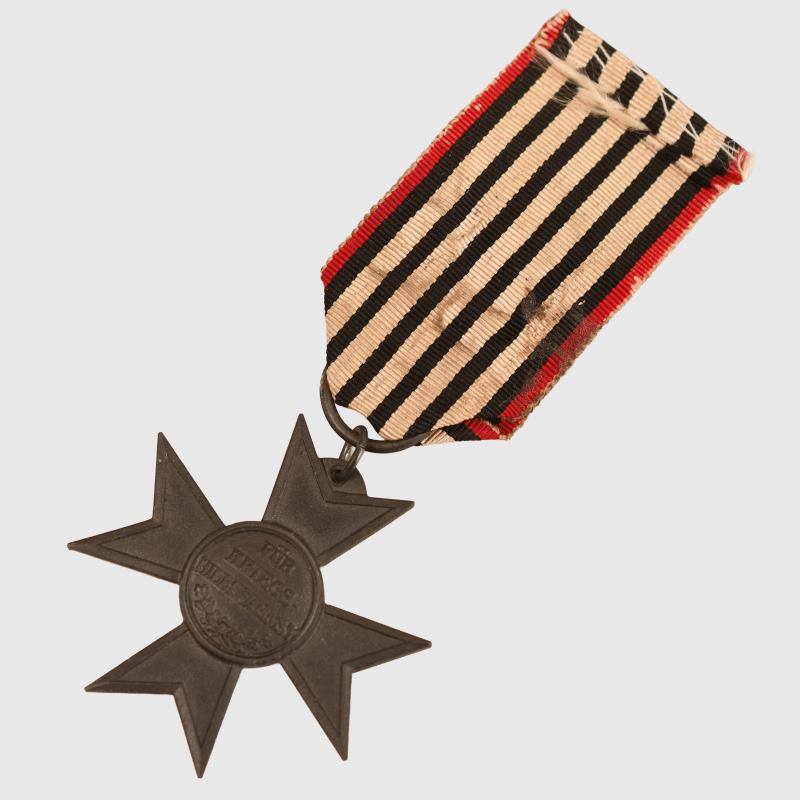 A good example, fine strike, with a very short section of faded and slightly shredded black, white and red ribbon.
