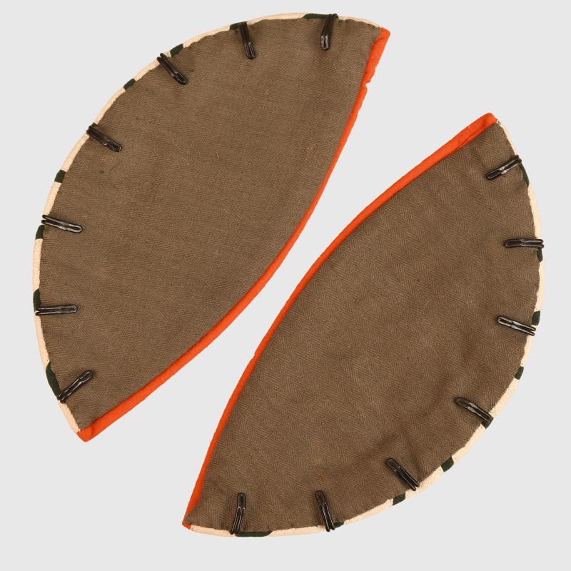 Subdued linen lace on a dark green background, red edging. Could possibly be a Jager Regiment. Nicely backed in herringbone twill cloth.
