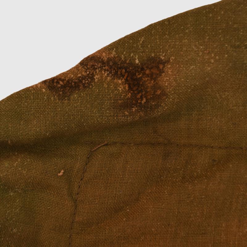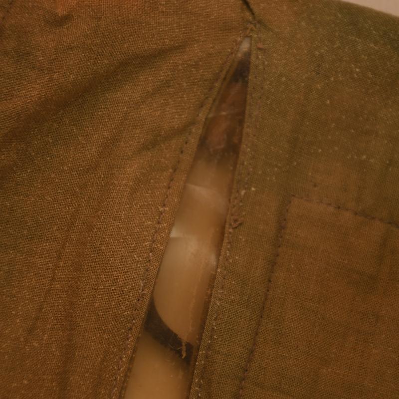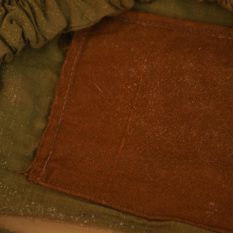 A very rare piece of First War British equipment being the Allenbury patent gas face mask that which has a Mica eye slit. Normally Mica of this age would have broken and discoloured, there are slight creases in it but no breaks and it is still clear. The full edges of the mask are elasticated to allow a snug fit to the head with a black neck tie. It is slightly discoloured in places with what appears to be a damp black lacquer in one spot. These masks were manufactured by the well known Company Allen and Hanbury in May 1915 and were one of the many experiments in the protection of soldiers against gas attack, this item was found in a small militaria shop in 1989 by a very experianced collector friend of ours , who contacted the Imperial war Museum asking for photos of one, The IWM did not have one in their collections but were able to supply photos of the mask being used which accompany this mask, the IWM also stated at the time that so few were produced it is highly likly that only small number have survived , their is a good description and images on pages145 and 146 of Campaign 15 published by Military Mode publishing and written by Chris Pollendine
