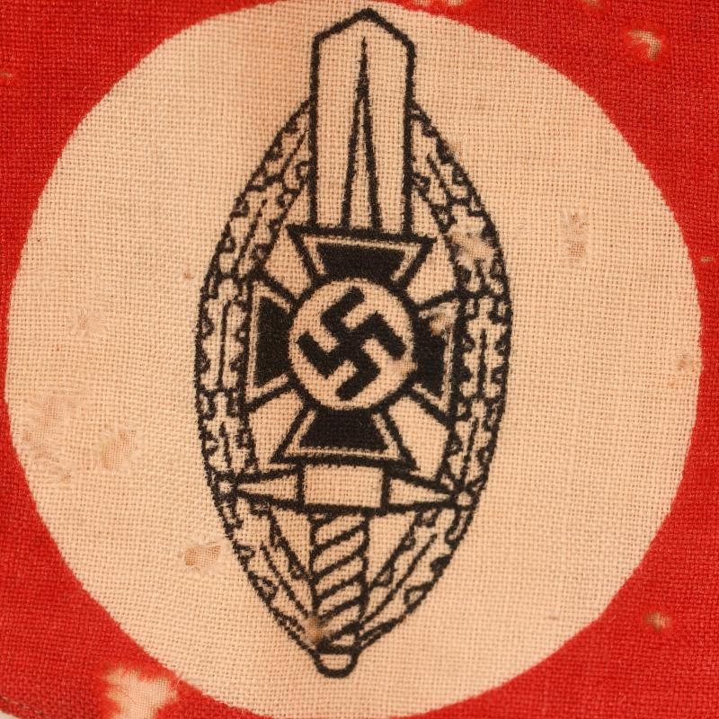 A slight moth damaged car pennant all printed, measuring 32 x 18cm. The NSKOV emblem printed on a white field to the centre. Some moth as can be seen from our web images. Complete with its rope and clip suspension.