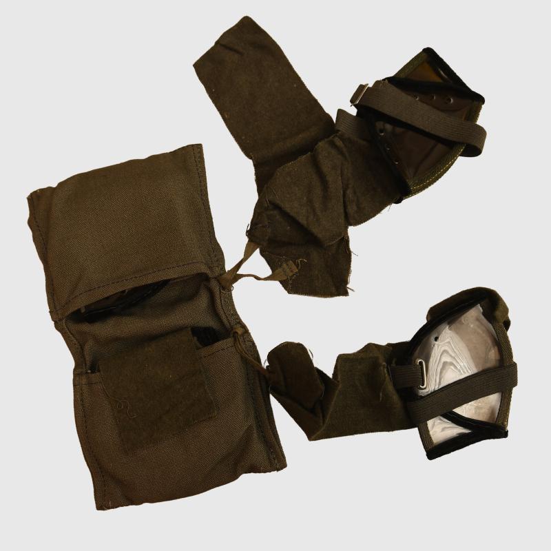 A single pouch with two individual compartments, each compartment having two sets of the celluloid and velvet edged anti dust goggles.