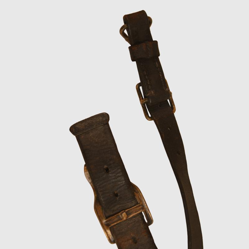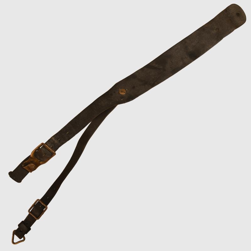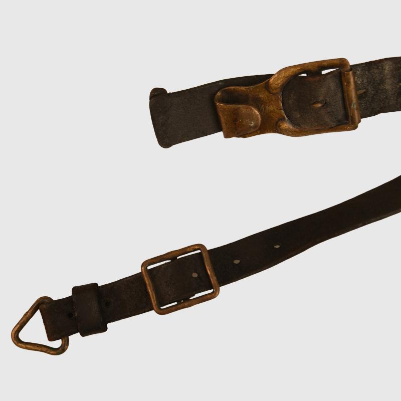 A scarce accessory being the removable shoulder strap to fit a German fur or canvas back pack. Indistinct Berlin maker’s mark but a clear ‘B.A.X 1916’ for 10th Army Corps. Brass fittings.