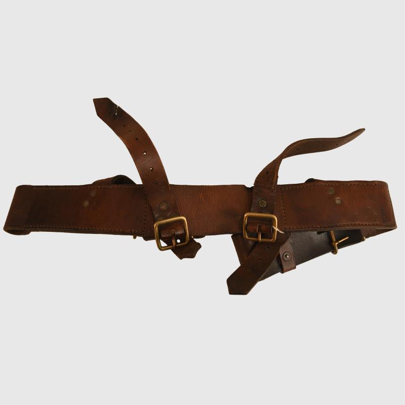 A very nice condition all complete 42 inch 1914 waist belt. Maker marked 'Frank Bryan, London' with date '1919'. One of the straps has been contemporarily re-attached to its buckle fixing and matches exactly.