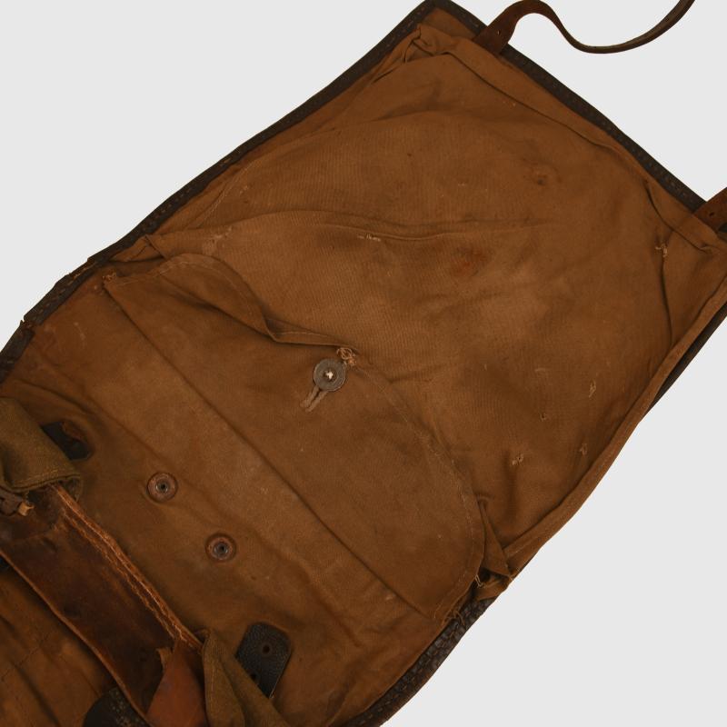 RB numbered to the leather at the reverse side of the pack. All leather strapping complete with all correct metallic elements. Stitching strong. Some slight mould to the olive drab on the reverse side. Fur good. All internal strapping complete.