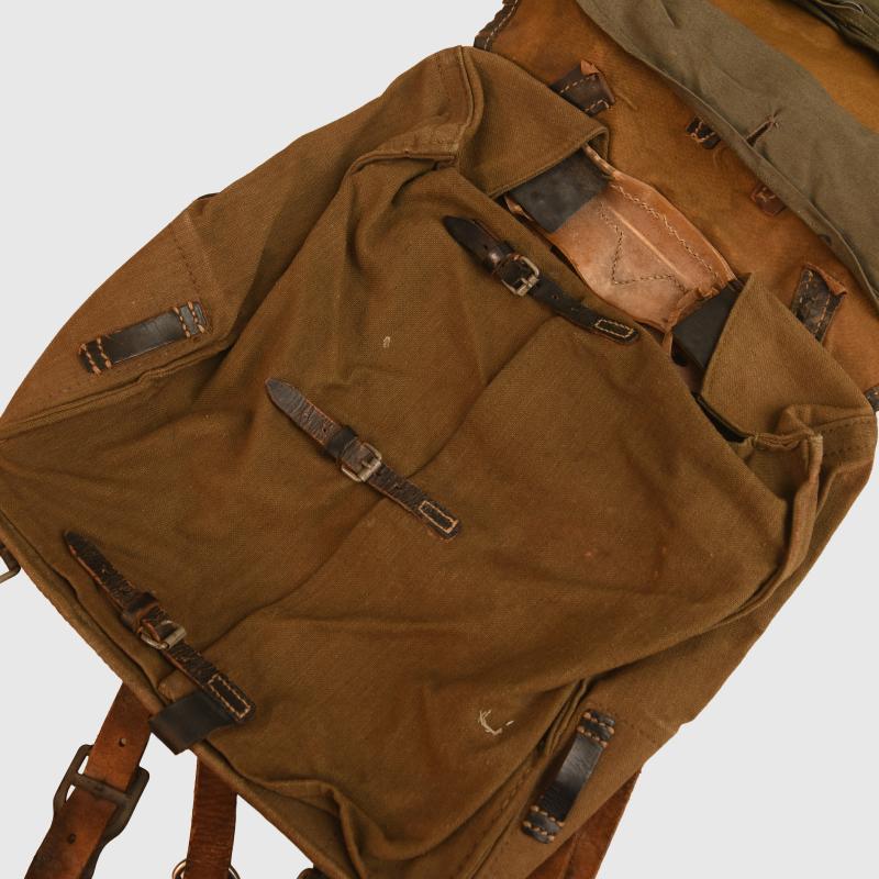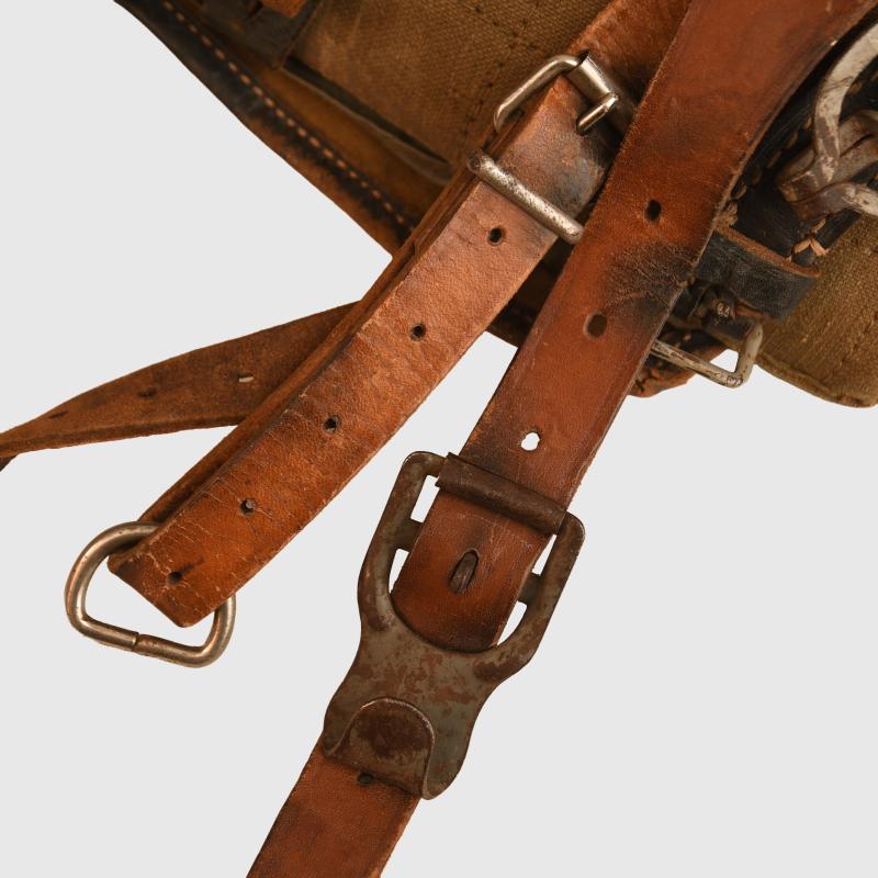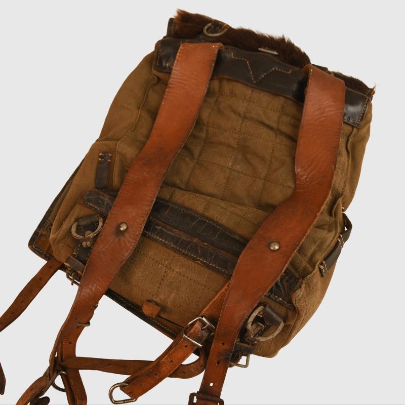 A very nice RB numbered fur back pack, the fur is excellent, all interior fittings good and clean, leather present. All metal buckles in good order with a matched set of brown leather shoulder straps.