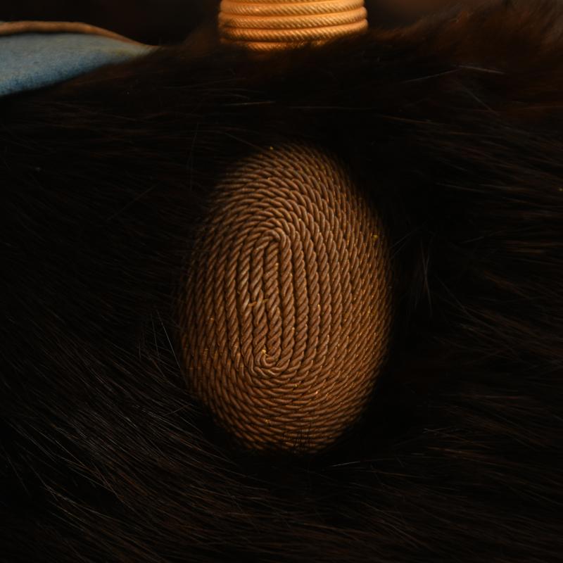 A fabulous condition late Victorian early Edwardian officers fur busby in its identified tin, owned and worn by Captain F.G.Watson. The fur is absolutely superb, the blue busby bag with its gold trim without any moth damage, with its gilded wire woven cockade and cap lines around the centre of the busby. Complete with its white Morocco leather liner and original drawstring, some age toning to the white leather. The upper inner crown with the beautiful gilt maker’s logo of ‘Hamburger Rogers & Company, Kings Street, Covent Garden, London’. The helmet is with its correct long white Ostrich and Vulture feather plume, it is also complete with its correct officers Hussar pattern plume holder and gilded ring, the original cotton carrying bag for the helmet, its long set of cap lines, its tin with the ‘Captain F G Watson’ label and the ‘Hamburger & Sons’ metal label to the exterior of tin, the plume tube for the plume itself. Complete with its Hussar pattern rope ringed beautifully gilded, leather and velvet lined chin chain. The 3rd Hussars, originally formed in 1685, saw service in Ireland, Spain and The Netherlands and various other campaigns, including the Napoleonic Wars. The Regiment was part of the 4th Cavalry Brigade, at the outbreak of WWI it was sent to France, in WWII it was converted to armoured troops, a long and distinguished history. More extensive, extra images can be seen on our new Premium website, type in regimentalsmilitaria.co.uk in to your web browser.