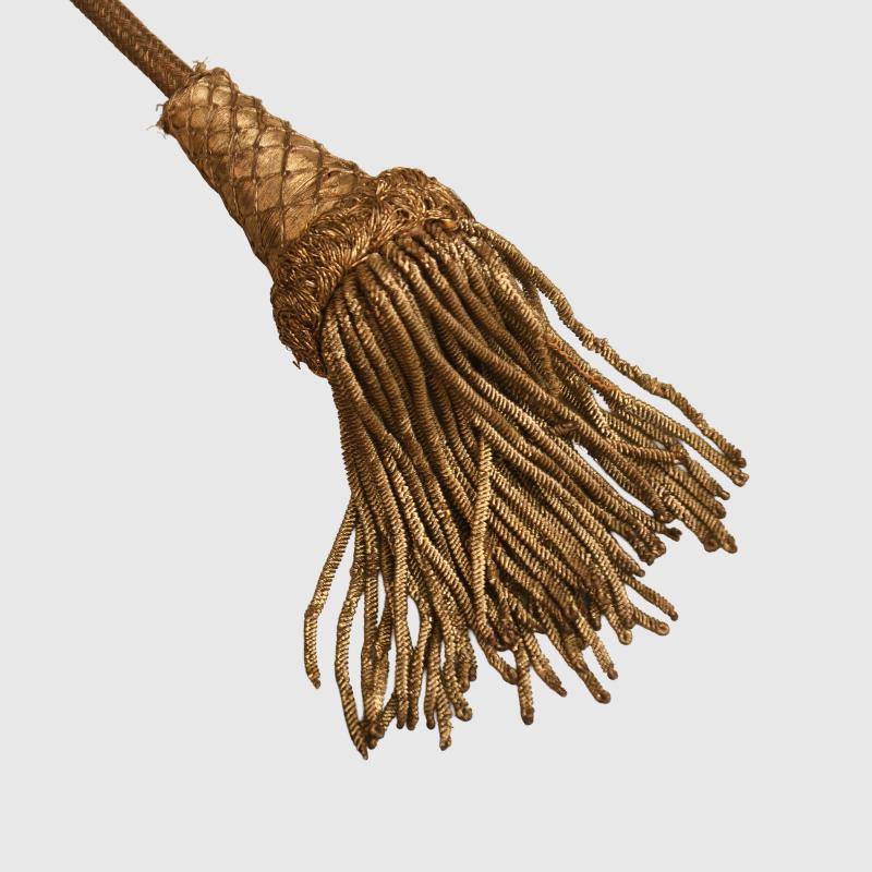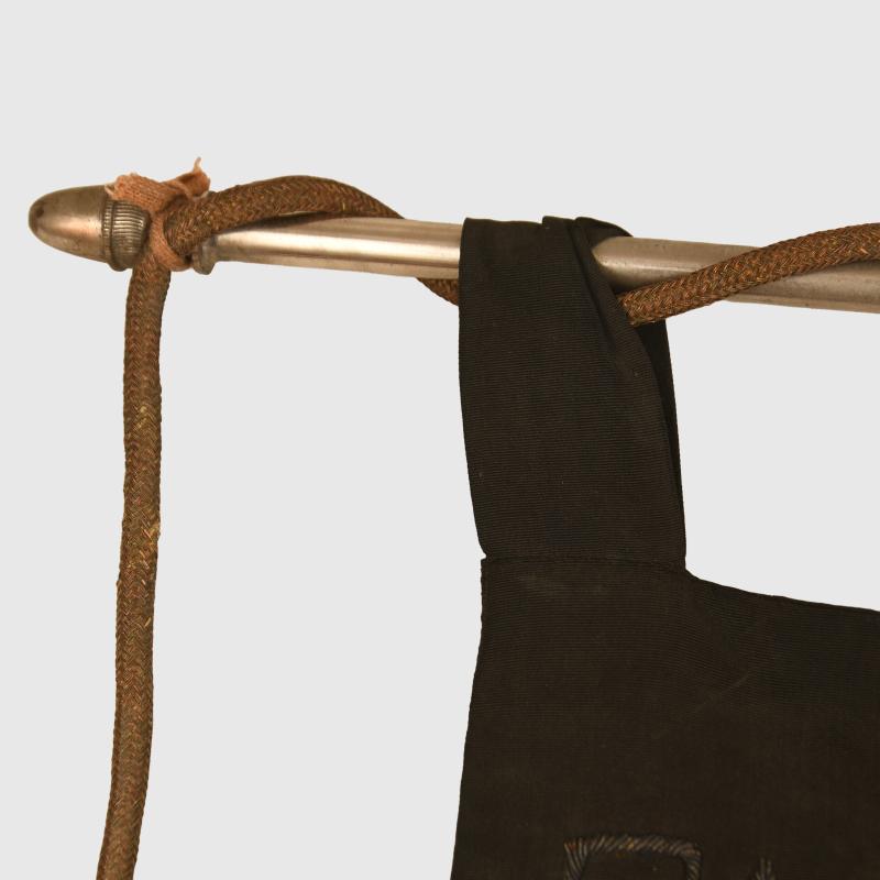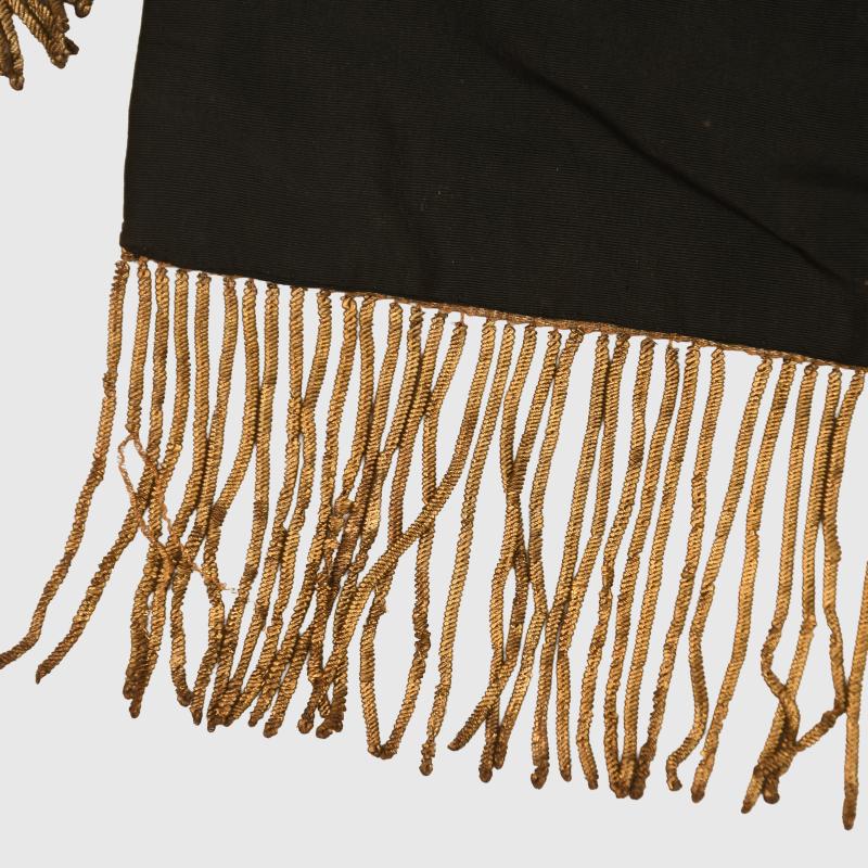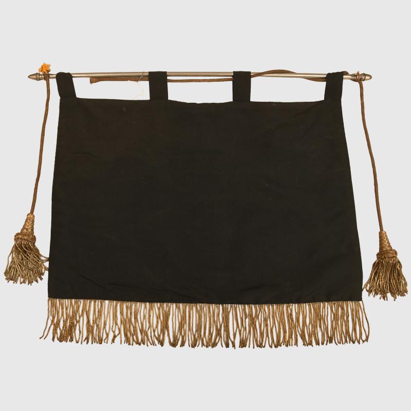 The banner all in black measuring 56 cm x 45 cm, on its original carrying pole with its original side hanging tassels, gold fringed base, black silk material excellent, Fascist insignia in faded gilt, the lettering above the insignia reading, Fascio Di Comabattimento. The embroidered in gold below the Fascist insignia reading Castel di Piano, this banner was more than likely for veterans of the First World War who had joined the Fascist party, most of the banners that appear on the collectors market are generally for agricultural associations and other civil movements, not for military based veterans organisations.