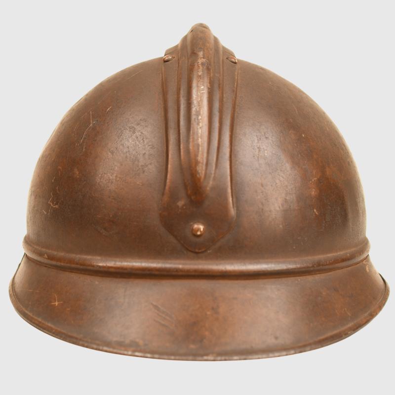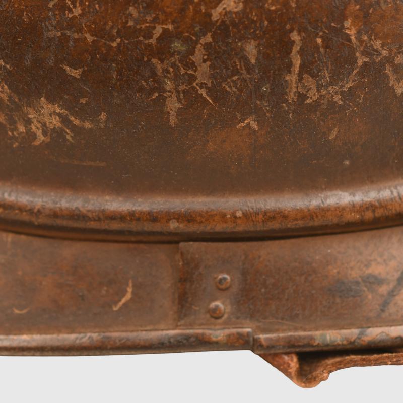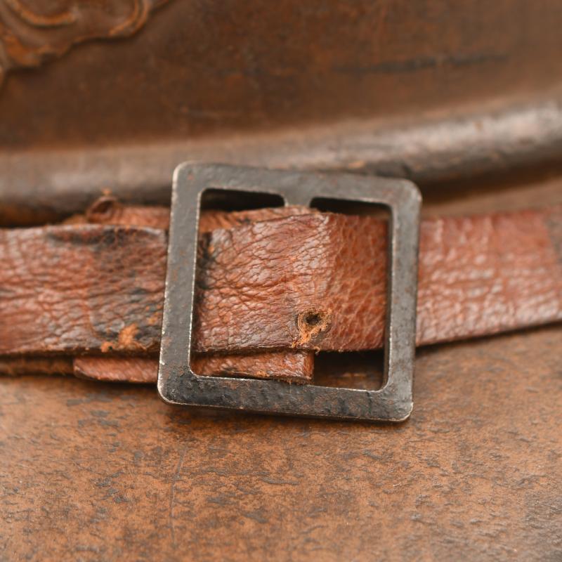 A very rare Adrian helmet of WWI being a large size Adrian helmet painted in the Russian brown with the Russian double headed eagle badge. The badge is magnetic and undoubtedly original to the helmet, we mention this as many Russian helmet badges have been reproduced. Complete with its brown and black leather interior, all of the tongues present with its original drawstring and its original chin strap.