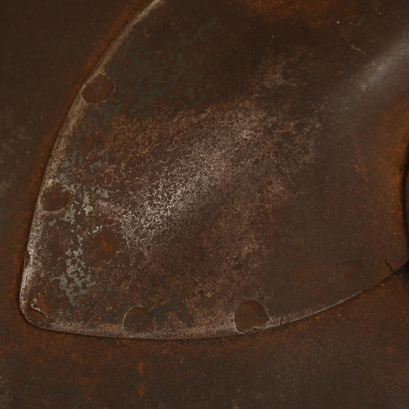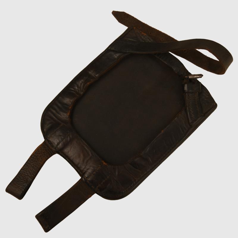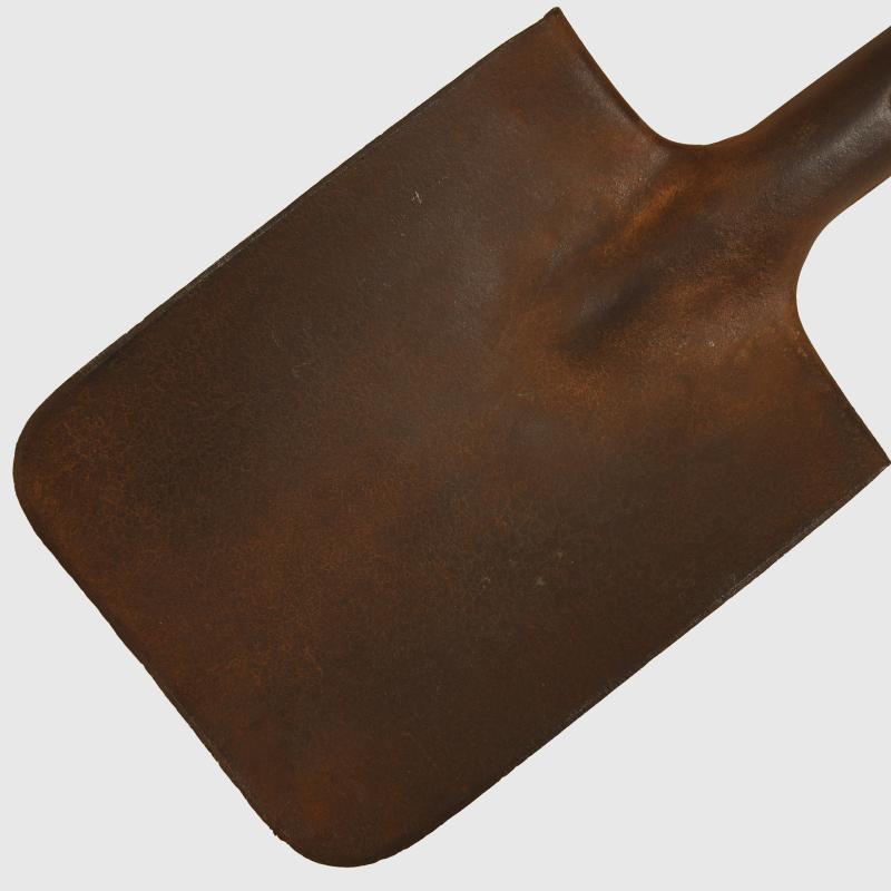 A nice condition spade head with some light surface rust, which has been cleaned. Wood haft excellent. Complete with its black leather cover, original belt loops and closing strap with buckle.