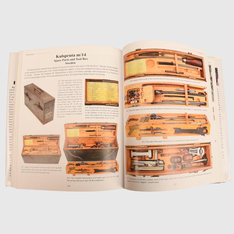 A fantastic book in full colour. 393 pages of in-depth text and beautiful colour pictures of all the support equipment needed to keep machine guns working in the field. Too many to list here, British Besa, Italian Breda, British Bren guns, American Brownings, Colt machine guns, French machine guns, German machine guns and so on. Complete with its original dust cover, unused, signed copy by the author.