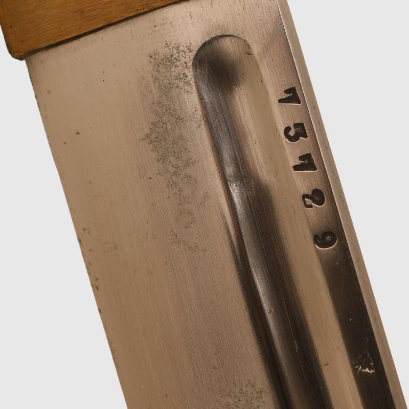 An exemplary condition example of the Japanese NCO sword, these so often can be in very poor condition. This example showing very little wear, just a small thinness of paint around the carrying ring where the sword would have been held in the hands of the Japanese NCO and rubbing from the hanger chain or belt. The single fuller blade is absolutely superb, all matching numbers ‘75729’ to both the upper part of the blade and the throat of the scabbard. The paint to the hilt, again is virtually 100% complete. Japanese acceptance marks to the ring at the base of the hilt. It would be very difficult to better the quality of this Japanese NCO sword. More extensive, extra images can be seen on our new Premium website, type in regimentalsmilitaria.co.uk in to your web browser. The sale of Knives, other Edged Weapons and Firearms are restricted to those aged over 18. Verification of age is required before purchase is concluded, this will include providing a scan of photo ID including your address and in some cases may require video verification by FaceTime or WhatsApp video, at Regimentals discretion, until formal laws on this requirement are enforced in the UK.