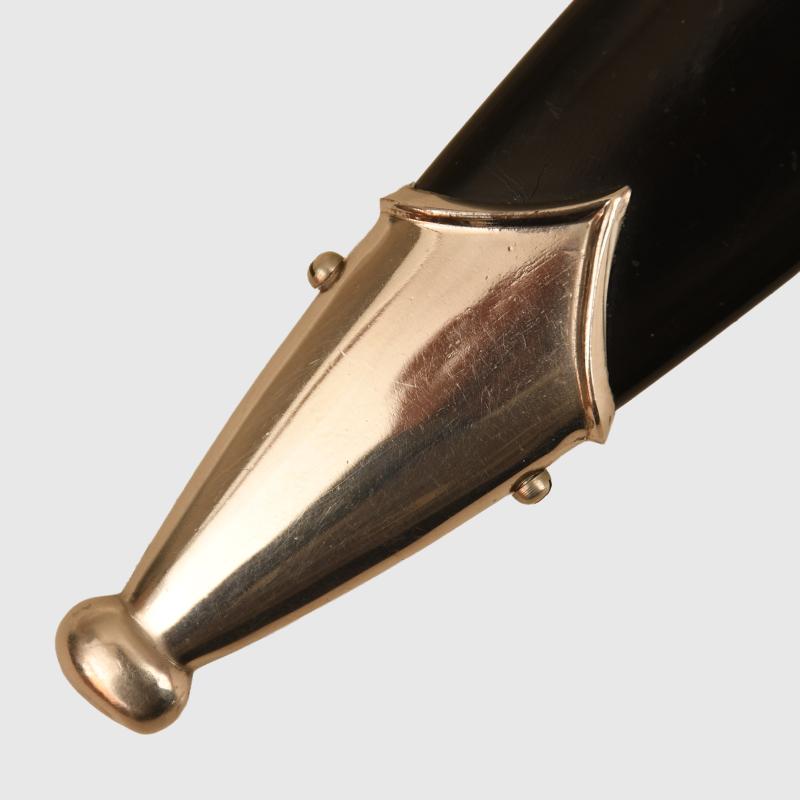 An opportunity to acquire a magnificent condition RZ M bladed M33 dagger, the blade absolutely mint condition with all cross grain finish remaining, the contrasting grey colour to the lower field of the motto standing out proudly against the brighter finish of the blade, maker marked RZM 7/5, which is the maker Carl Julius Krebs, the plating to all of the fittings which include the upper and lower cross guard mounts the two scabbard mounts, mint bright, the Ebony wood grip completely undamaged or un-dented, all of the edges to the grip sharp, the SS enamel in set undamaged, with a nice quality aluminium national eagle, the four screws holding the upper and lower scabbard mounts in place have heads unturned, all of the black painted finish to the scabbard complete, with age lines showing through from the steel underneath, one very minor indentation to the ball of the lower scabbard mount, complete with its black leather hanging strap, clip marked RZM5/71 OLC, probably the best SS man’s dagger we have had in stock for a long time. More extensive, extra images can be seen on our new Premium website, type in regimentalsmilitaria.co.uk in to your web browser. The sale of Knives, other Edged Weapons and Firearms are restricted to those aged over 18. Verification of age is required before purchase is concluded, this will include providing a scan of photo ID including your address and in some cases may require video verification by FaceTime or WhatsApp video, at Regimentals discretion, until formal laws on this requirement are enforced in the UK.