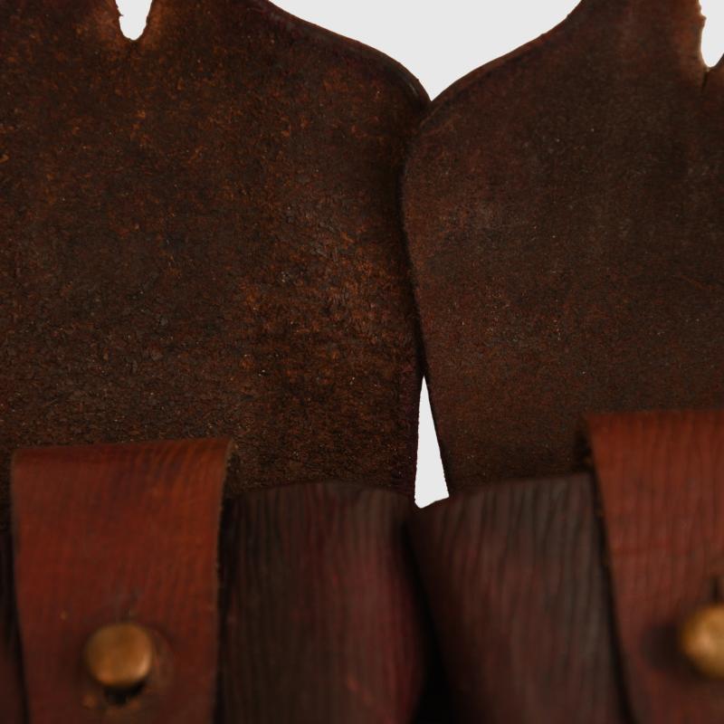 A very nice condition five compartment ammunition bandolier for mounted troops. Although undated this is the 1903 pattern constructed in the classic grained brown leather of World War I.