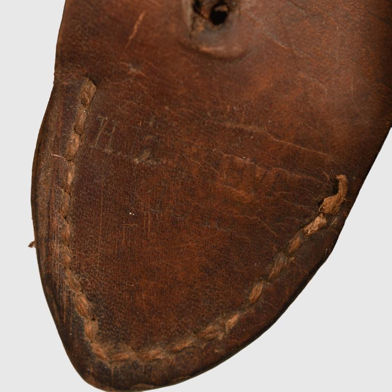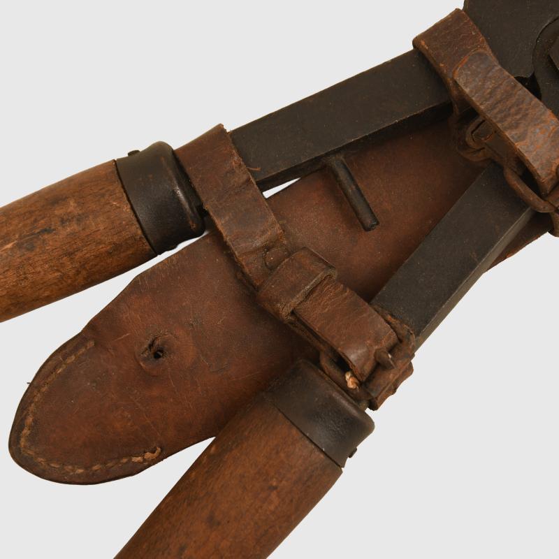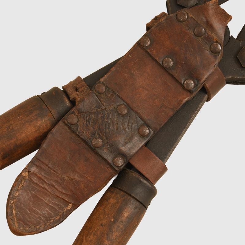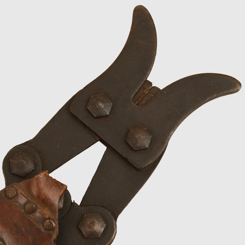 A nice condition pair of the well known Chater-Lea wire cutters. Manufacturers marking to one of the arms, all wood handles complete, fitted with its rare leather carrying frog. We have never seen the leather carrying system before.