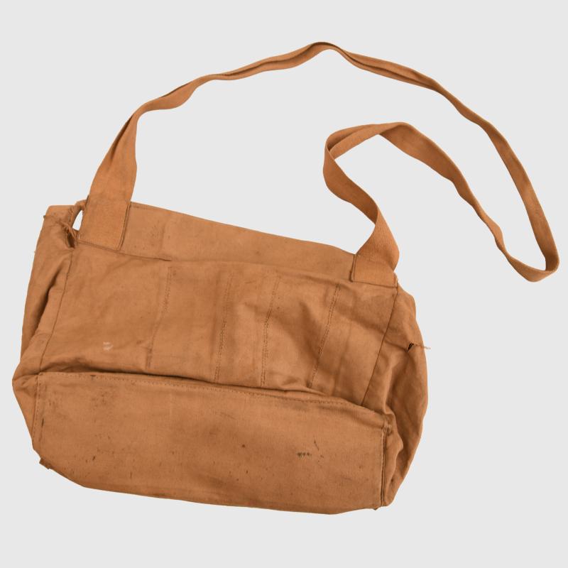 Small lightweight haversack/side bag with shoulder strap, single button closure. Issued to the forerunners of the Home Guard the local defence volunteers as a side pack.