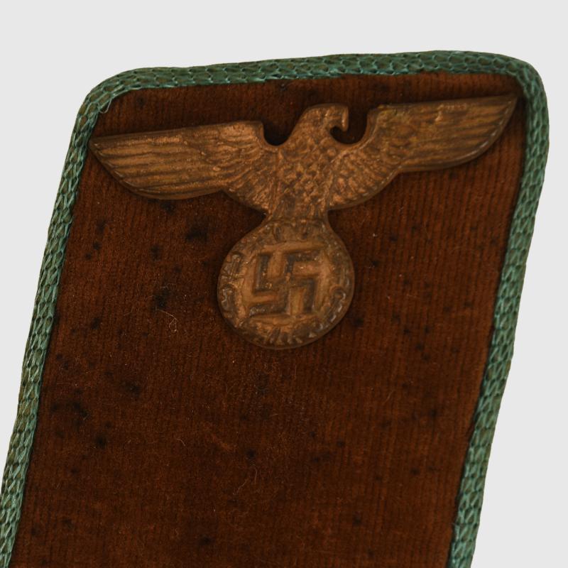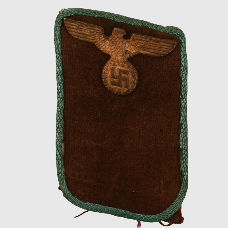 A nice matched pair of blue Ortsgruppe piped political leader Anwarter collar patches. Slightly subdued gilt to the eagles, good brown velvet base.