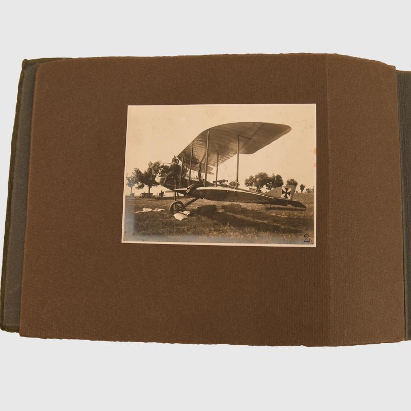 A 10 inch or 25cm x 7 inch or 17.5cm classic WWI style photograph album from an Austrian unit. The album itself contains only 17 images, all of large format, mainly comprising of an Austrian artillery unit in the field. Images of Austrian artillery men at their guns, groups of soldiers with the Schwarzlose machine guns, larger guns firing, mounted horse artillery. Within the album there are two images of artillery observation balloons being hoisted aloft with images of Austrian flying machines complete with their Schwarzlose machine guns. One superb shot of an Austrian aviator within the cockpit of his machine with his flying helmet laid to his side on the wing. Nine accompanying loose images of aviation interest showing German troops surrounding a crashed British or French machine with the bodies of the dead clearly in view. One of the cards has a handwritten annotation to the reverse side dated 'June 1916'. Other images with German troops surrounding a captured French or British machine. A further grouping of the images of German troops in the field with both M.16 helmets on, and field caps. A group of captured Hindu Commonwealth soldiers, a Sanke Berlin published postcard size images of Manfred Von Richthofen. A good grouping of trench and aviation related albums and images plus four large Austrian War Ministry official photographs showing Russian prisoners, naval forces at work, trench warfare all dated '1915' on the reverse sides. A good interesting grouping.