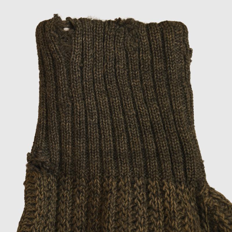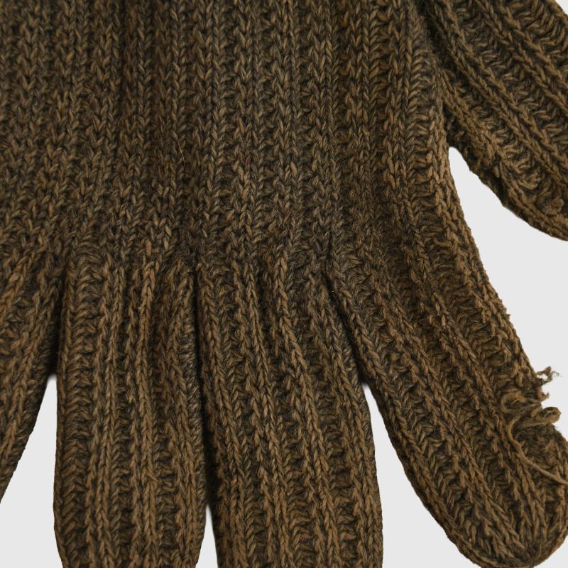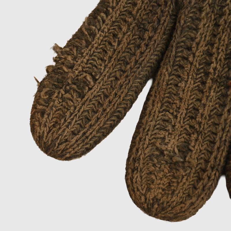 Three white woven bands into the gloves indicating the size. Some slight moth and wear overall.