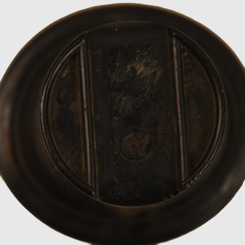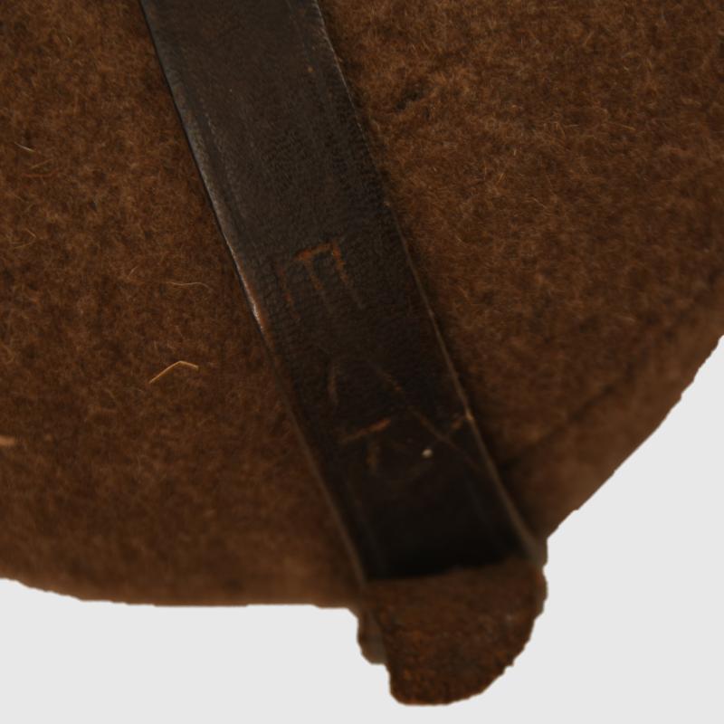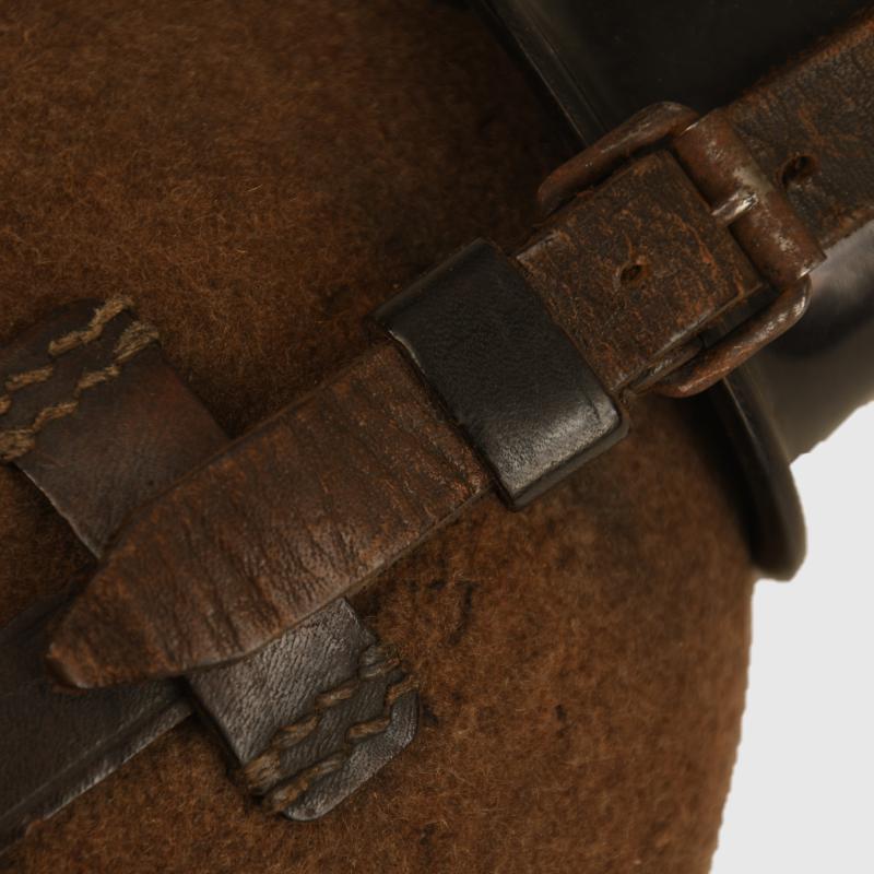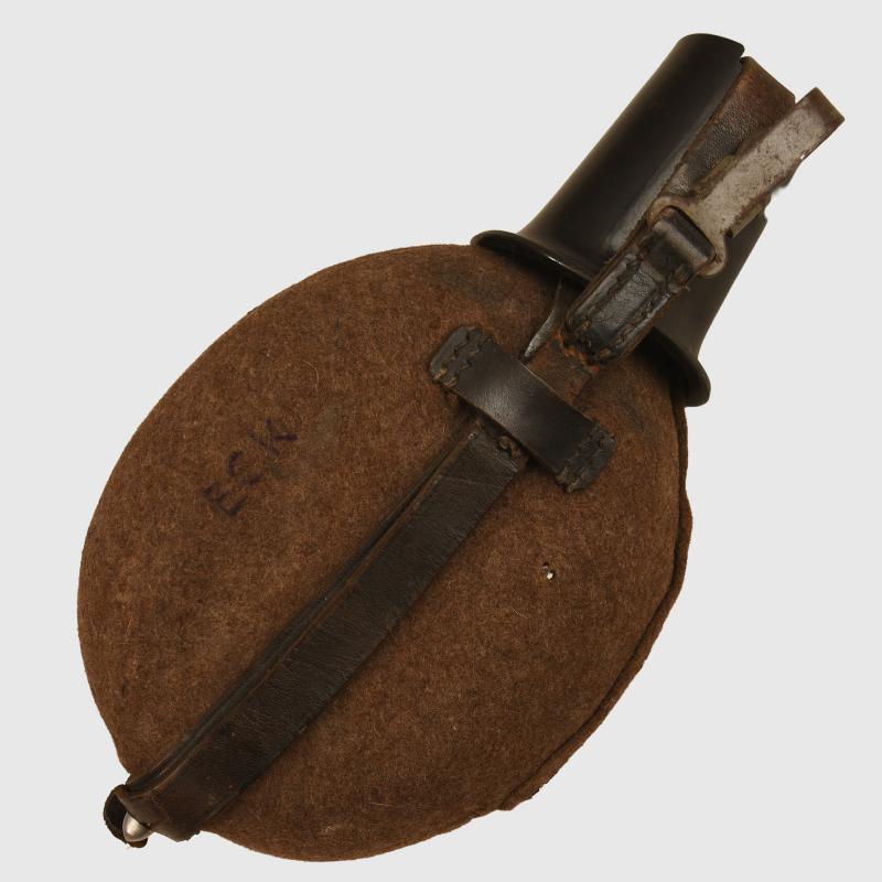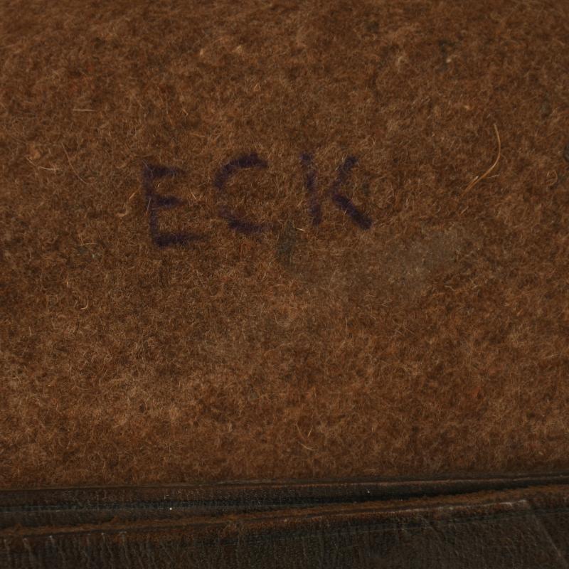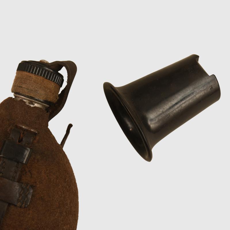 Felt covered. Bakelite cup. Leather cradle all good and operating. The initials ‘ECK’ hand applied in ink to the felt. Cup maker marked. Stamped ‘MNO’ to the aluminium neck.
