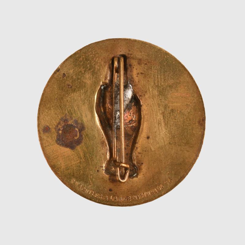 A good clean example of the 1934 NSDAP oath of allegiance badge, bronze finish excellent, a good heavyweight tinny, maker marked in raised relief on the reverse side with its original heavier weight than the normal tinny type pin fixing.