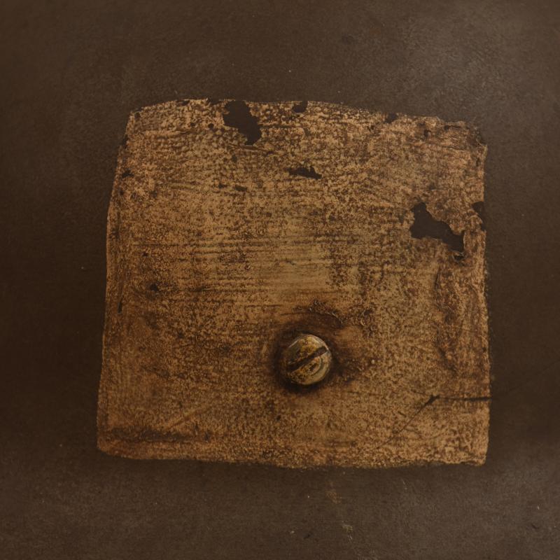A good example of the scarce to find Austrian Berndorfer helmet of WWI, these are extremely hard helmets to find, especially complete, many shells turn up but to find a complete example is difficult. Much of the original Austrian brown still visible with a mixture of a hue of green. On the rear of the shell is the white painted square of the Austrian Stormtroopers for night detection. Complete with its three pad lining, its steel inner liner band, drawstring and original Austrian webbing, leather and metal chinstrap system. Complete with its air vent to the crown.