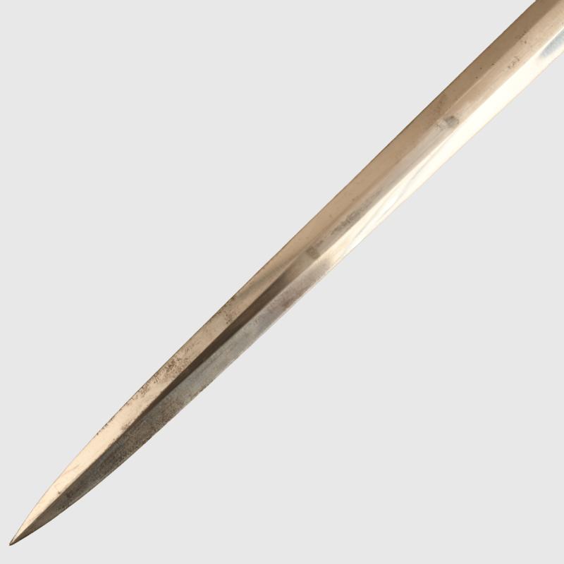 Absolutely mint blade by Alcoso, Solingen. All the square edges to the flat top of both sides of the blade is sharp with the edges nice and clean, good bright cross grain finishing. All the fittings, which include the upper pommel, cross guard and scabbard all matching in colour and quality. Deep orange grip, which is without any cracking or damage, with its portapee knot and a set of officers hanging straps, deluxe type, which have unfortunately slightly oxidised. More extensive, extra images can be seen on our new Premium website, type in regimentalsmilitaria.co.uk in to your web browser. The sale of Knives, other Edged Weapons and Firearms are restricted to those aged over 18. Verification of age is required before purchase is concluded, this will include providing a scan of photo ID including your address and in some cases may require video verification by FaceTime or WhatsApp video, at Regimentals discretion, until formal laws on this requirement are enforced in the UK.