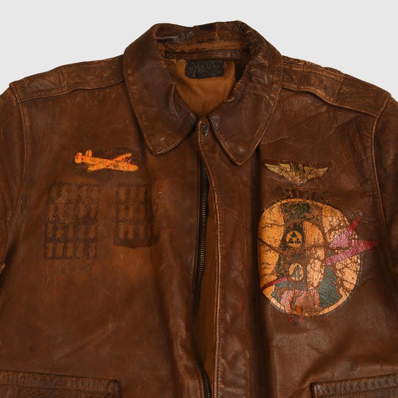 US WWII A2 LEATHER FLYING JACKET WITH PAINTED INSIGNIA.