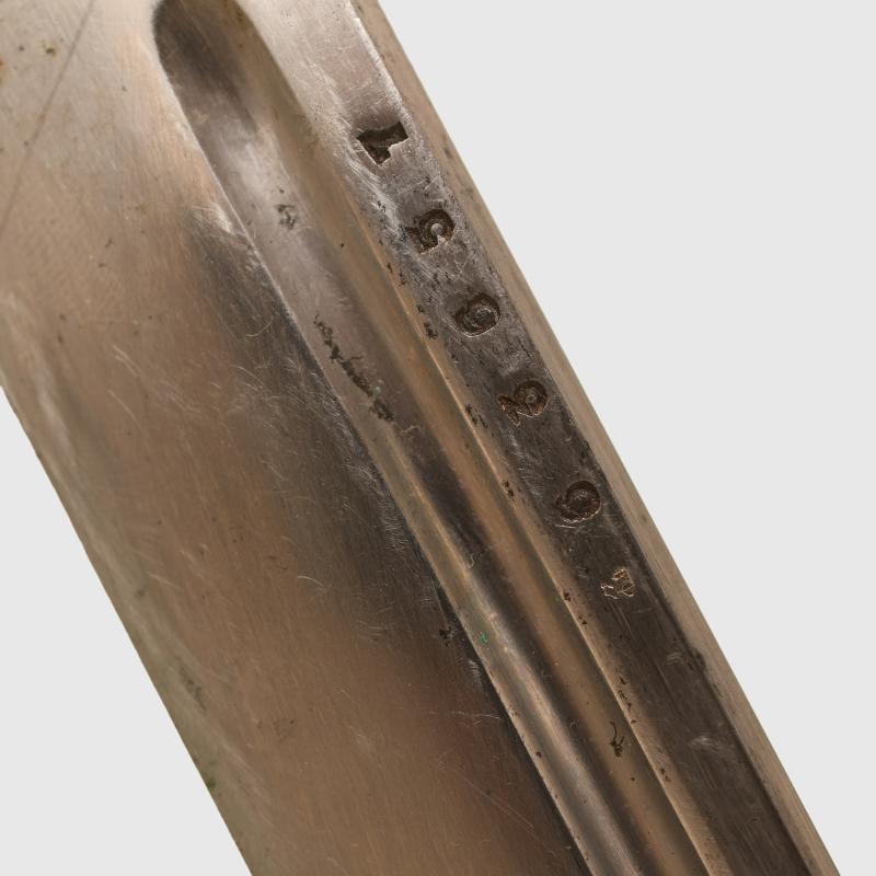 Generally good blade, bright, with its long single fuller, numbered ‘63857’ with its standard NCO cut out cross guard (tsuba). The aluminium faux wrapped hilt with some oxidisation, still with its hanging ring and its closure catch, Japanese ordnance marked on the lower part of the hilt, in its scabbard, which is number mismatched, which unusually for an NCO sword has a leather combat cover. The combat cover has a small section of possibly 20cm where the stitching along the closure seam has opened. The sale of Knives, other Edged Weapons and Firearms are restricted to those aged over 18. Verification of age is required before purchase is concluded, this will include providing a scan of photo ID including your address and in some cases may require video verification by FaceTime or WhatsApp video, at Regimentals discretion, until formal laws on this requirement are enforced in the UK.