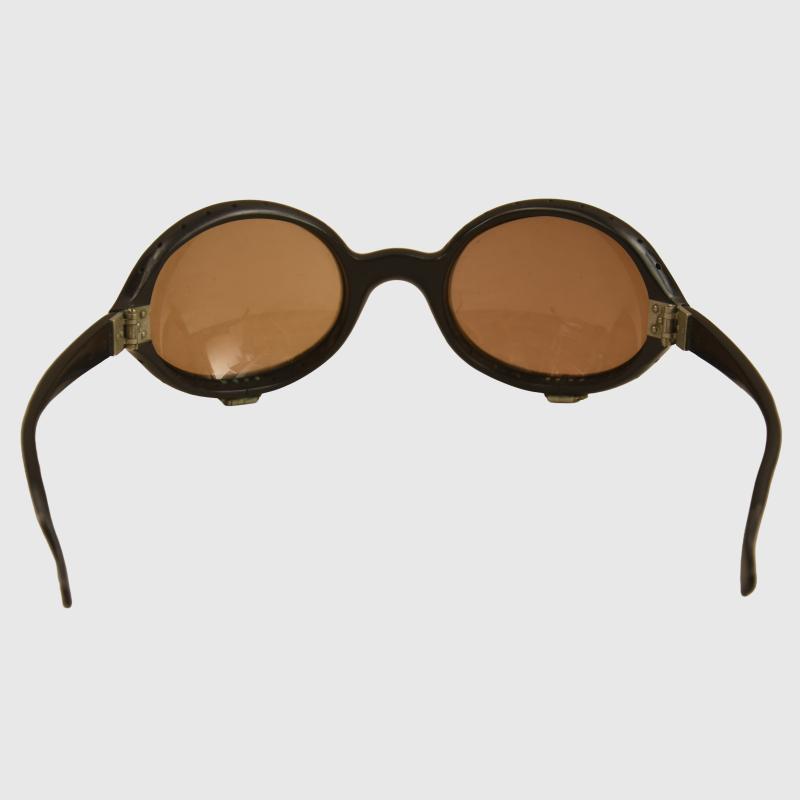 The shatterproof goggles with fixed frames are the rarest of any flying goggle of any combatant air force of WWII. These are the very first model, the tinted lenses all complete with the same shape eyepieces as the later models but the huge difference being the fixed side earpieces. Beautifully constructed, totally undamaged.