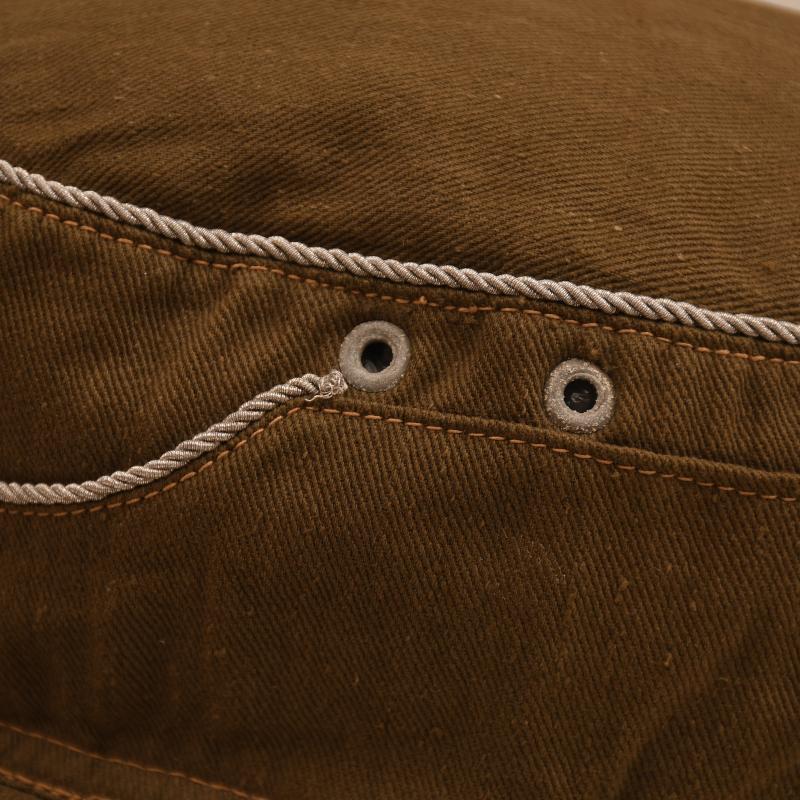 A nice example, size 56, of a 2nd pattern tropical visored field cap with its untouched Bevo woven blue on tan eagle and cockade, with the field adaptation of officers corded style piping to the crown and front scallop of the cap. The paint has lifted from the zinc eyelets. There is no damage on the cap. Evidence of wear use to the interior with the original owner’s name applied. As well as the size stamping there is the model number ‘42’ and the maker of ‘Karl Kubach, Mainz’. The only unusual feature of the Kubach made caps is that the sweatband is a combination of leatherette and canvas.