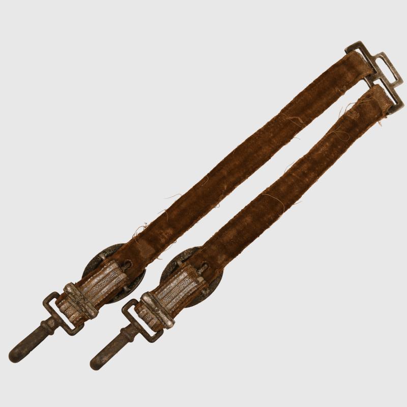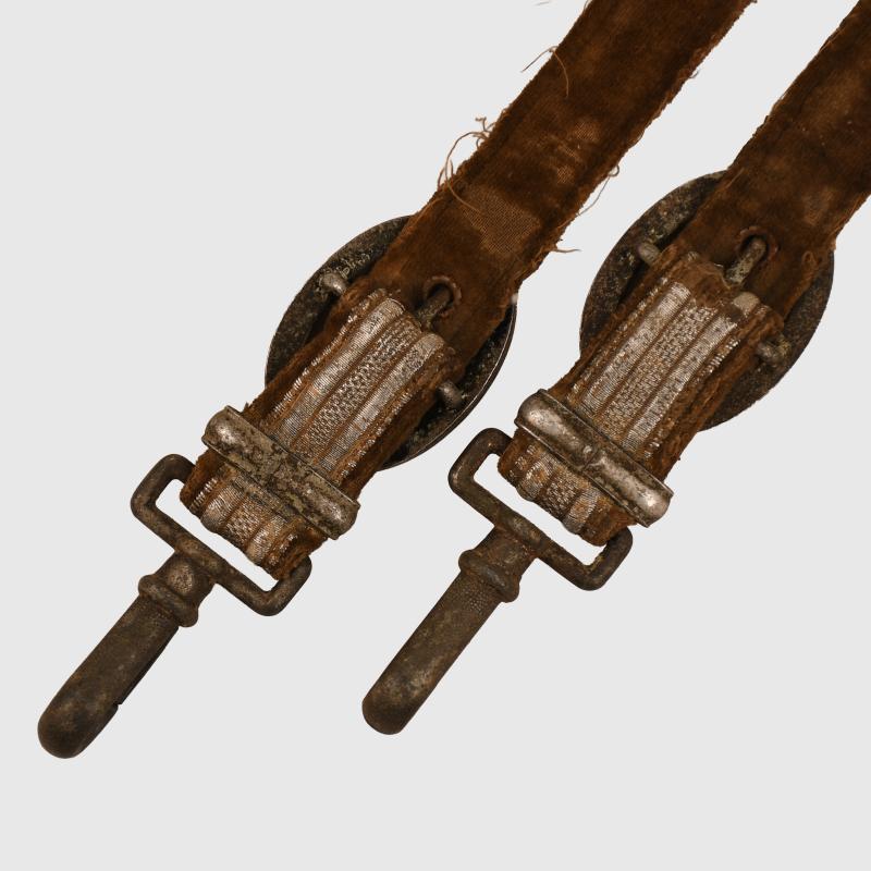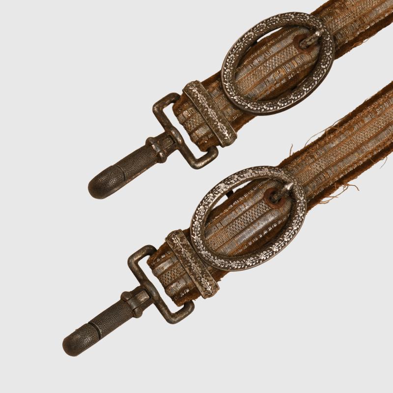 A very worn pair of army officers dagger straps, some discoloration to the brocade and threads loose but complete with all clips working correctly.