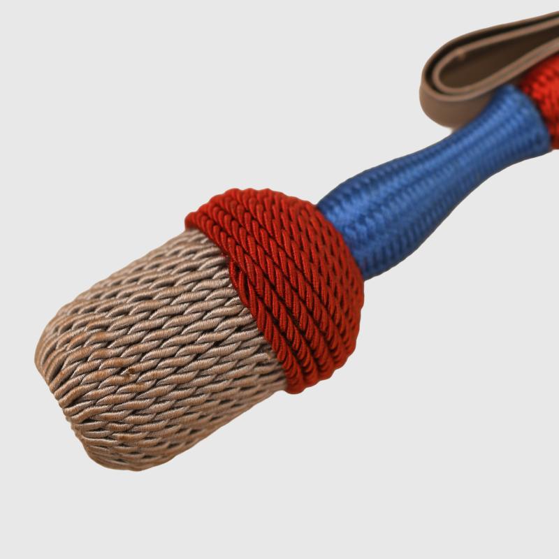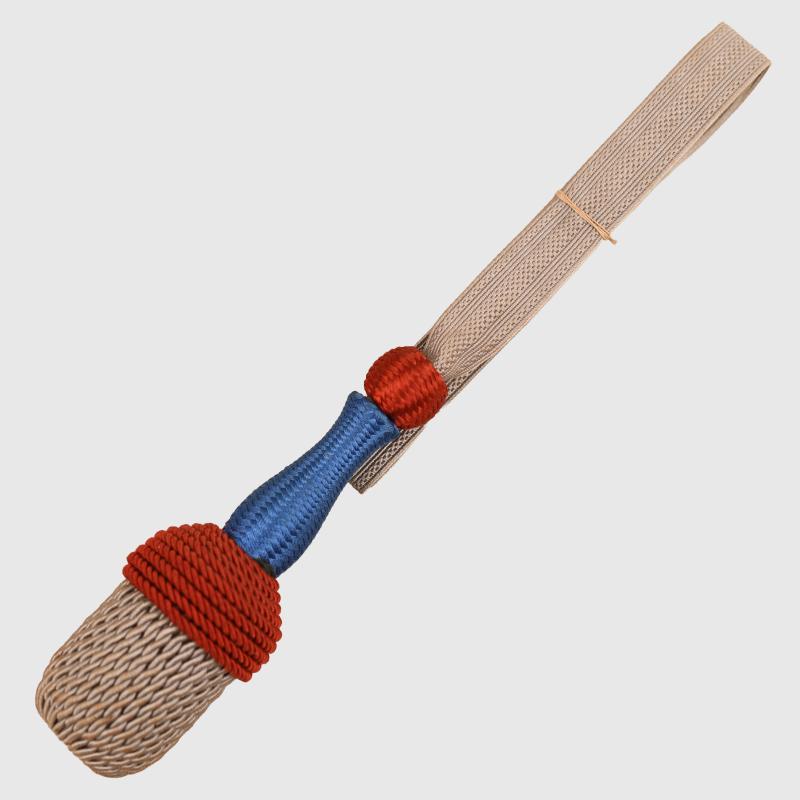 Grey strap with red slide, blue main body, red crown and field grey acorn.