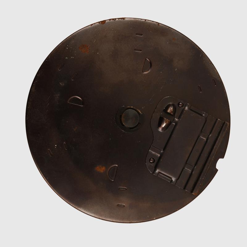 An extremely good reproduction of the 50 round magazine for the Thompson M1 machine gun. Some slight rust marks but the majority of the blueing remaining. Fitted into its fabulously constructed reproduction pouch and its shoulder strap, the pouch is ‘US’ marked on the exterior.