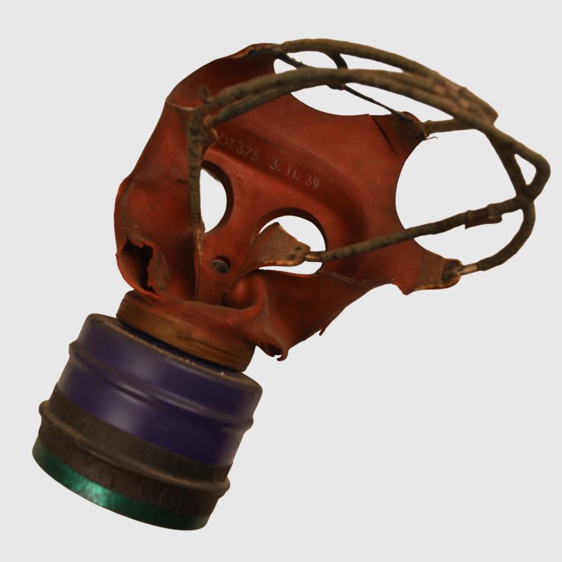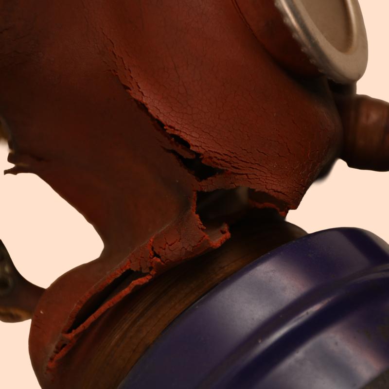 Some of the rubber of the mask itself has degraded, complete with its head strapping arrangement and its filter.
