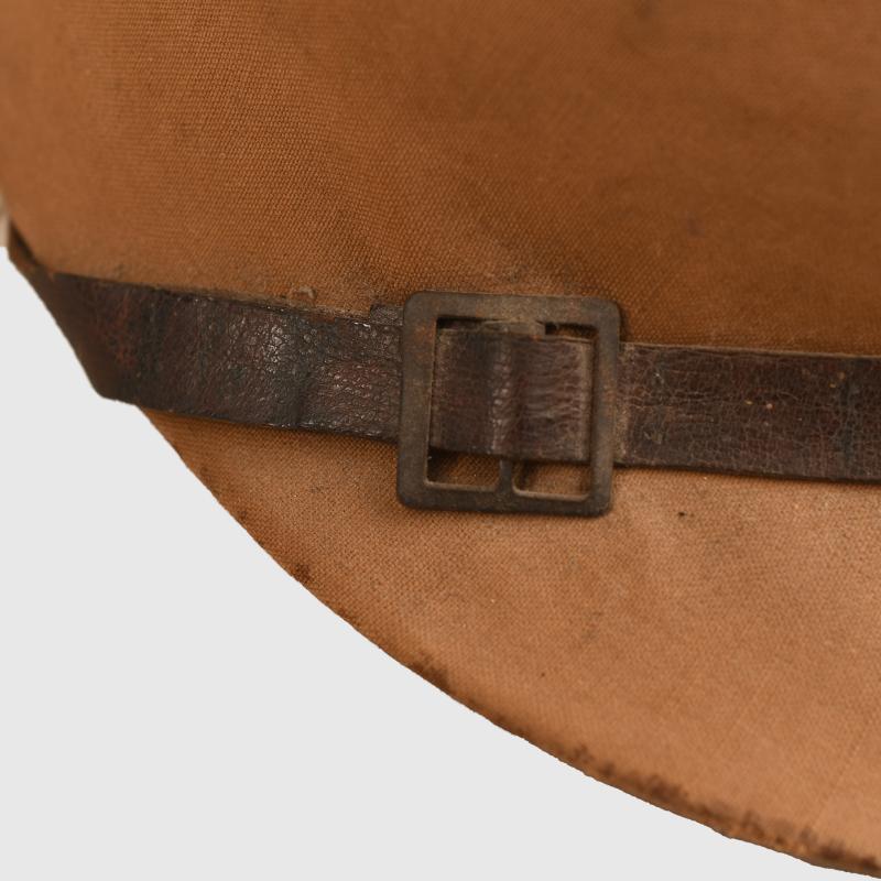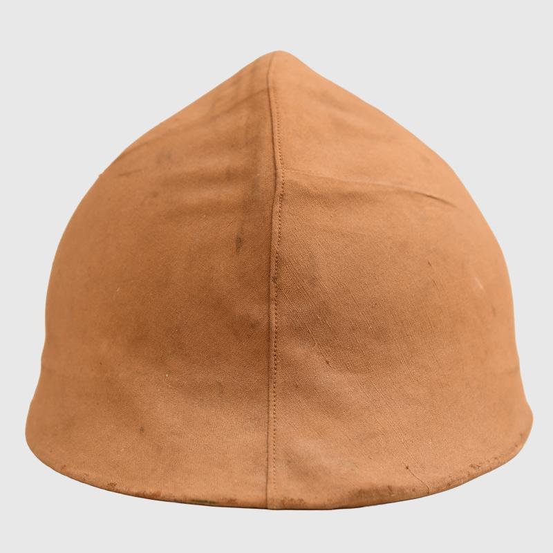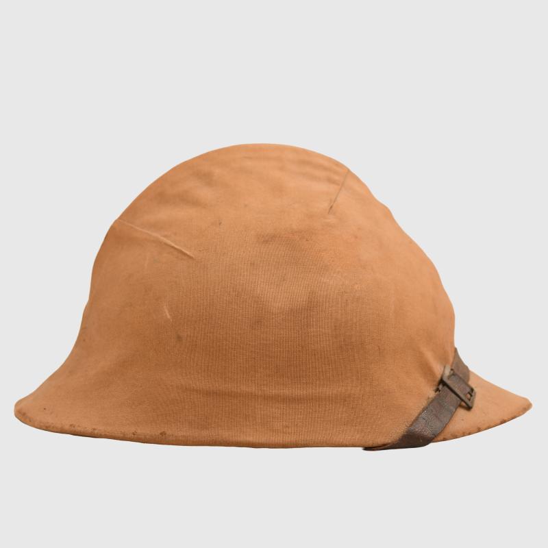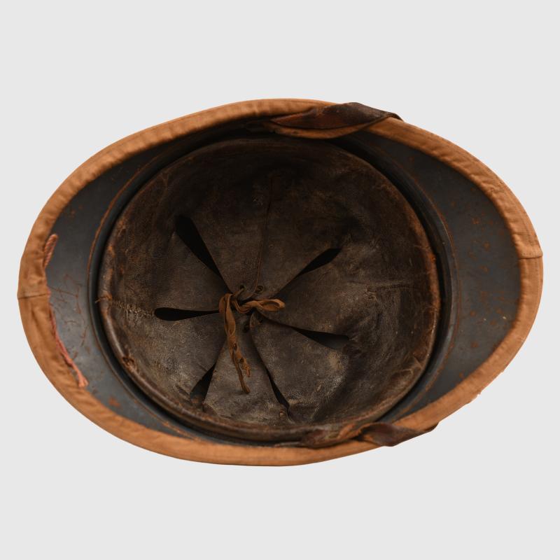 Nice condition Adrian helmet in horizon blue retaining much of its original paint finish with some light chippings. An original owner’s initials hand inscribed into the inner rear skirt. Liner excellent. Fitted with a totally original helmet cover for the Adrian helmet, an original cover, which are extremely rare. Slight tearing to the cover on the front brim.