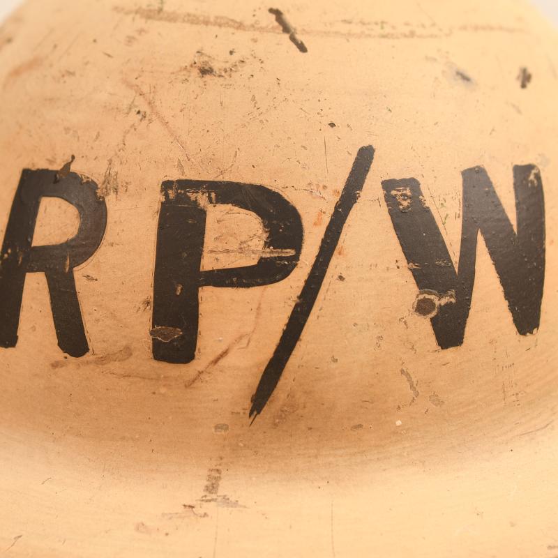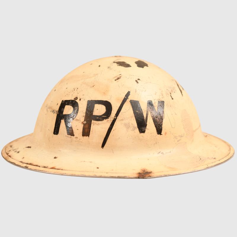All painted white with lettering ‘RP/W’ to the front. Undated liner band. Correct chinstrap.
