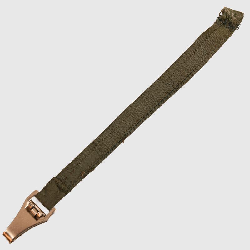 The 18cm long section of tunic lining material attached to a sprung loaded clip, these were sewn to the interior armpit of an officers tunic and were long enough to pass through the tailorered hole in the uniform tunic for suspension of a sword or dagger.