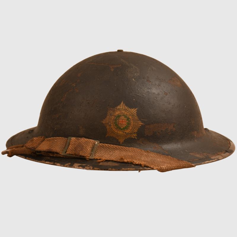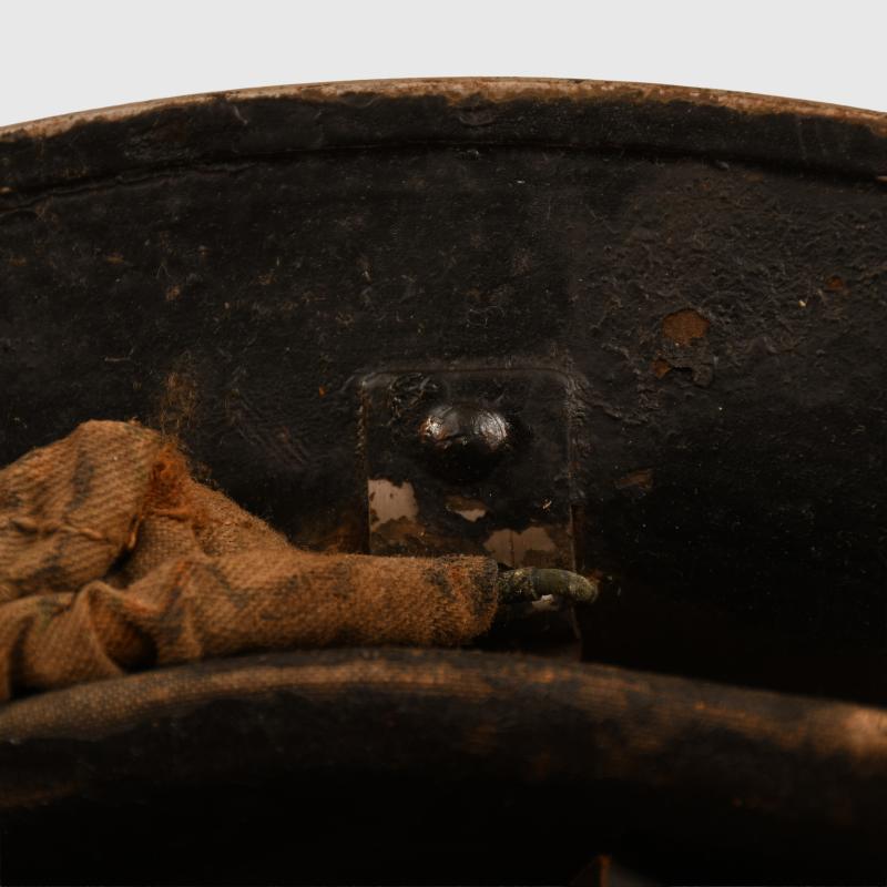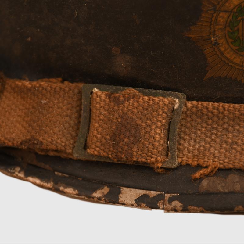 A 1939 dated liner Brodie helmet, painted black with a National Fire Service decal applied to the front, slightly different badge than we have normally encountered with a Union Flag to the centre. Slight losses to the paint, with its original elasticated webbing chinstrap. The liner is complete with its original drawstring. Tied to the chinstrap in a small plastic envelope is a National Fire Service certificate of service to a Leonard Carpenter with his National Fire Service number, date of discharge 16th June 1944, rank on discharge Section Leader. Wartime service from 2nd September 1939 with the local authority Fire Brigade and then with National Fire Service from the 18th August 41 to the 16.11.1944, with the signature of the Fire Force Commander.