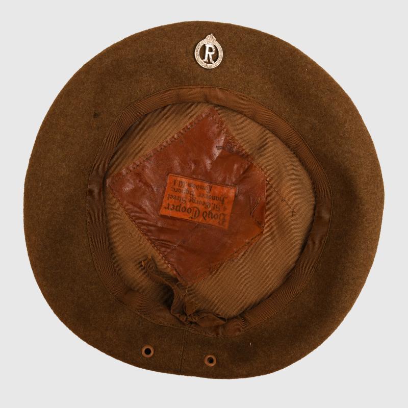 The tan coloured beret worn by this scarce women’s service. Some minor moth tracking, which is not serious. The original ‘Boyd Cooper, St. George Street, Hanover Square, London W1’ maker’s label visible beneath the protective lozenge in the upper inner crown. A scarce item of women’s military service headdress.