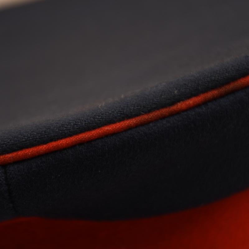 A large size standard blue Imperial German officers dress cap, having the rare roundel of the port of Bremen, worn only by reserve officers of Infantry Regiment 75 1st Hanseatisches, standard blue body with minor moth nips to the crown, minor moth tracking to the Red centre band, front peak crazed, original owner’s name hand applied to the leather sweatband which is all complete and undamaged, with standard service wear.
