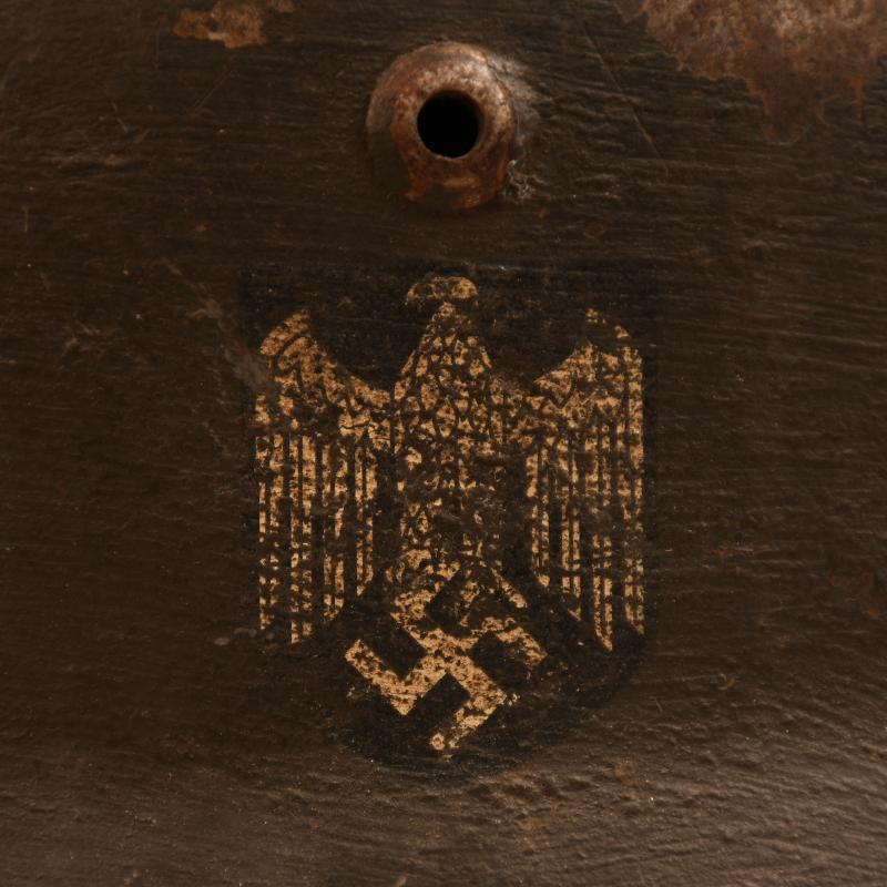 GERMAN WWII M35 DOUBLE, NOW SINGLE DECAL COMBAT HELMET.