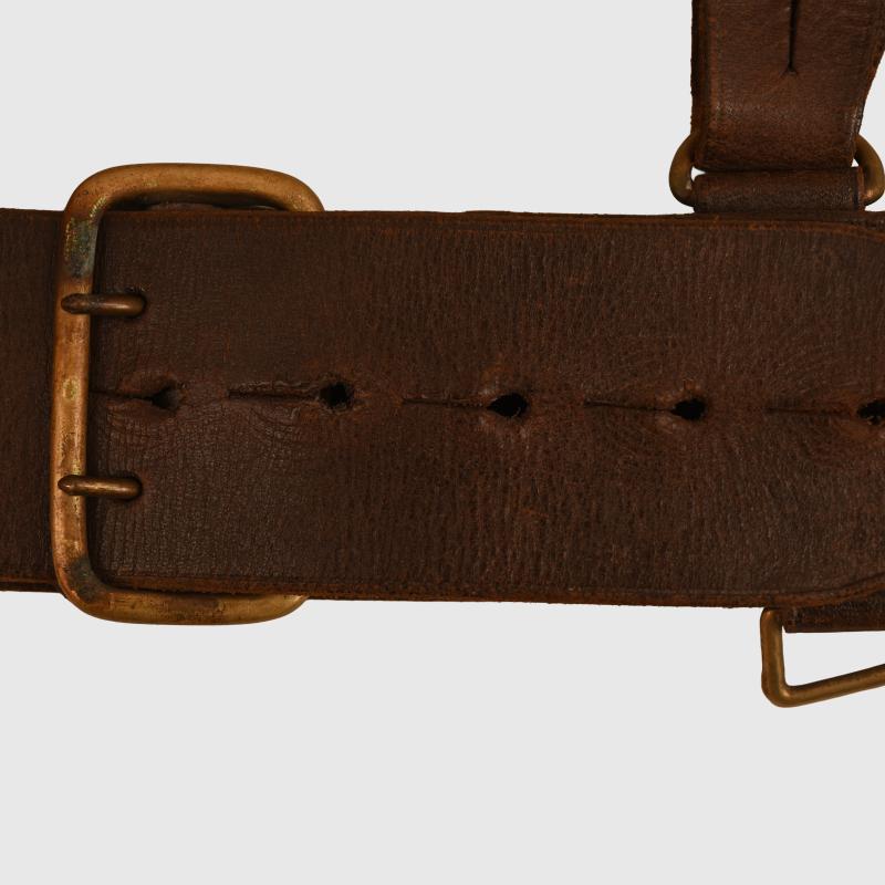 An exceptionally good undated example of the brass and leather waist belt and cross strap for a World War II or possibly World War I British officers uniform.