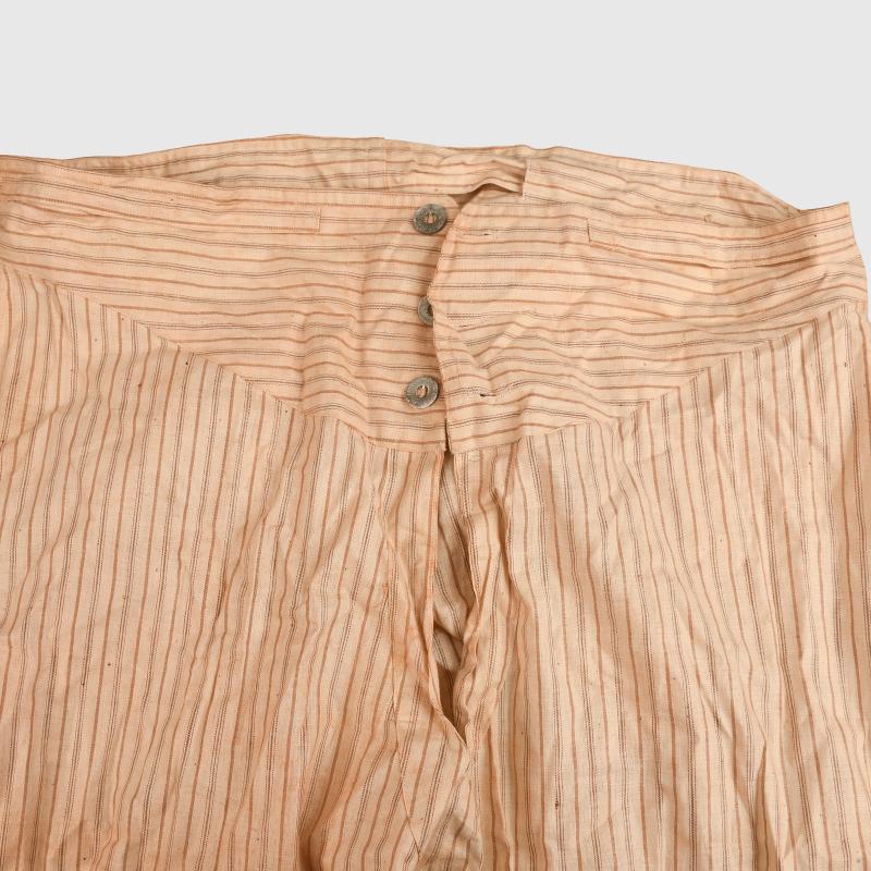 A mint unissued set for a French World War I soldier, comprising the collarless shirt with three button closure and a pair of the under trousers. All buttons appear to be present, slight storage staining, the only markings visible within the waistband of the under trousers.