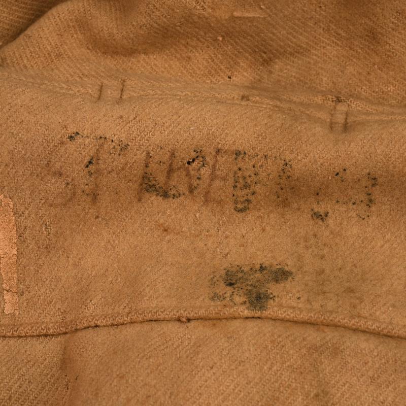 Recently acquired by ourselves from the son of the owner, standard British Army duffel coat, which has seen much service wear, complete with its three wooden toggles and its securing ropes. All buttons fitted, two open front pockets, complete with its hood with its female studs fitted. Two minor stitch repairs. This duffel coat was worn at the crossing of the Rhine in 1945 by Lieutenant Harold Bergbaum, enlisted in 1939 as a rifleman in a London Territorial Regiment The Rangers. In 1943 he was commissioned as a Lieutenant in the Essex Regiment and posted to No.3 Commando and then to 4 Commando, then 47 Royal Marine Commando in September 1945. as a member of 3 Commando he was at the crossing of the Rhine, discharged 29th July 1946. Harold volunteered before the outbreak of WWII, sensing that war was imminent and served his country proudly from the 1st May 1939 to the 29th July 1946. He saw much action in North West Europe. The coat has some illegible markings on the upper back panel. The coat comes complete with a 1995 copy of his Ministry of Defence war record.