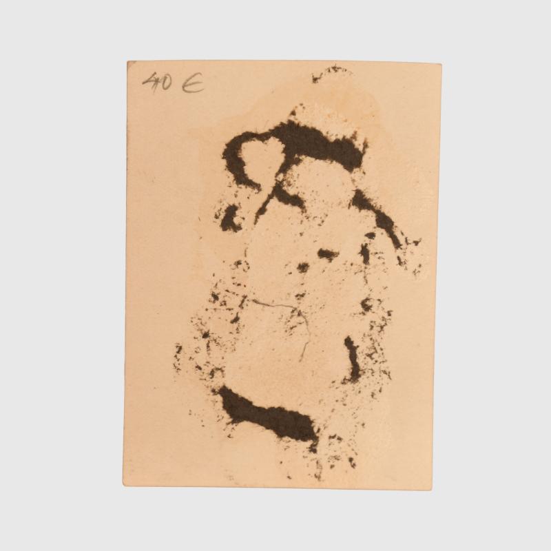 A very small format studio image, measuring 5.5 x 7.5cm of a German army soldier wearing Wound Badge at his breast and a homemade helmet cover presumably constructed out of zeltbahn material, held to the helmet by a rubber band.
