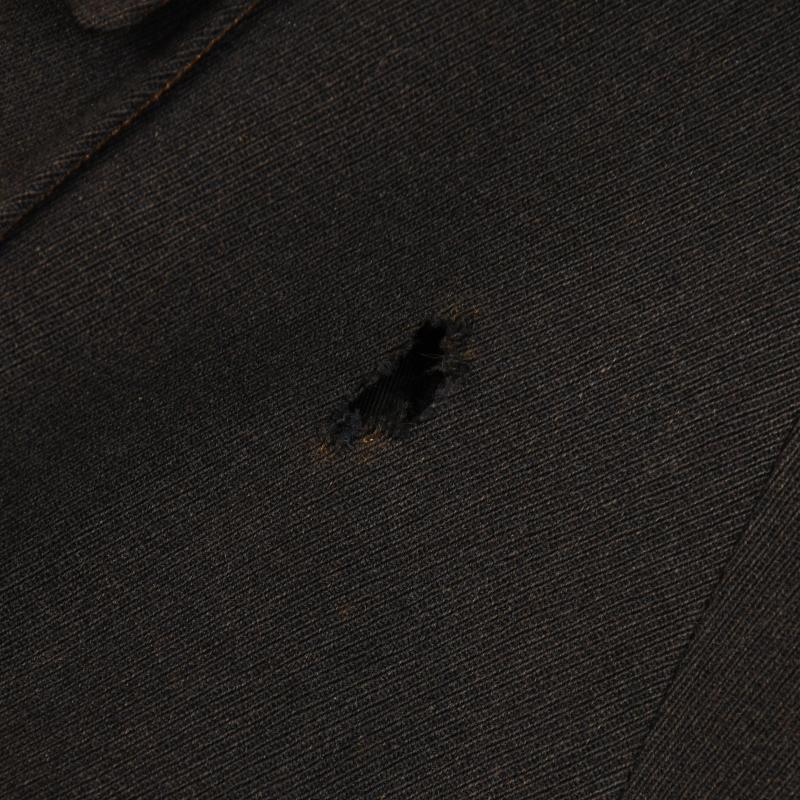 A standard Luftwaffe officers tunic, open collar wear, four button closure, four patch pockets with pleats and flaps, deep turned back cuffs, single pleat to the reverse side. The tunic has seen much service wear, there is a reasonable amount of staining around the collar area. There are some areas of moth damage below the lower pocket, both to the button and to the opening of the opposite side, the base of one cuff and tiny nips in some other places including the green waffenfarbe of the shoulder boards. The insignia is totally original to the tunic, it can only be a Luftwaffe Field Division officer, with its slightly oxidised Luftwaffe officers breast eagle. Three loops for a short medal ribbon bar above the right hand pocket, three sets of loops for three separate awards to the upper right hand pocket. A nice maker’s label of ‘Pieksen & Kohlmeyer, Oldenburg’. A dagger hanger close to the inside pocket. A tailor’s hole through the lower left hand pocket for the passing through of the dagger or sword hanger. A generally nice tunic to a rare arm of the Luftwaffe.