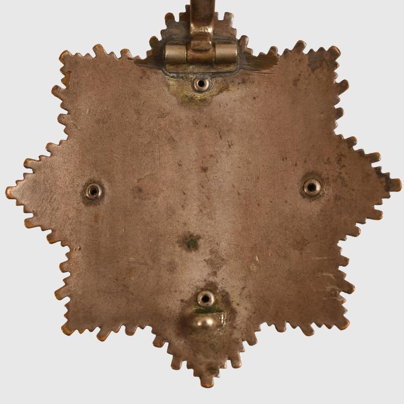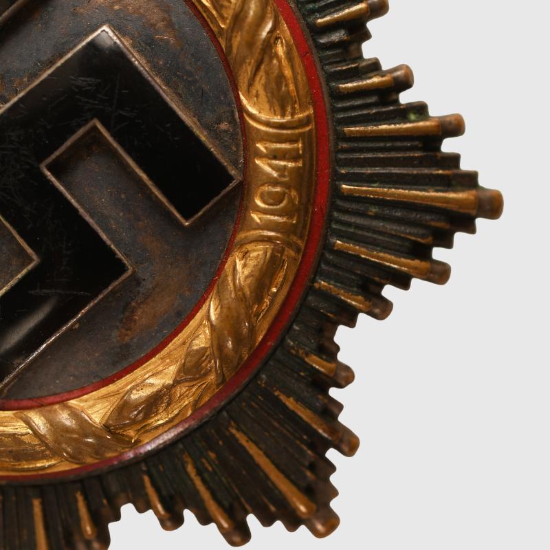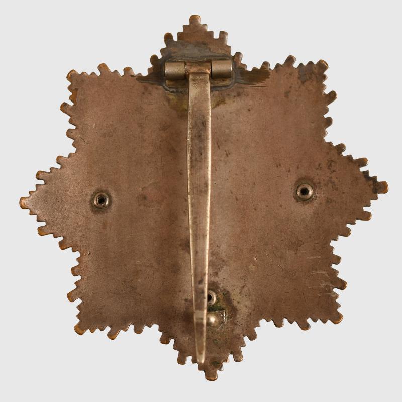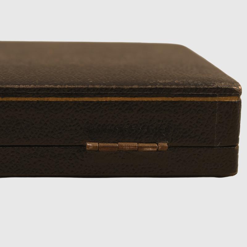 Pin marked number ‘20’ indicating the Company of Zimmermann & Company. The gilt to the 1941 dated wreath rubbed but evidence of original gilt in the lower field of the wreath. Some wear to the tips of the black ray. The enamel is undamaged but with slight scratching. Four classic Zimmermann rivets, each one hollow with the long tapering pin, original hinge and hook. Fitted into its original case with its complete and unbroken gold line. The upper inner fabric to the lid has toned and the flock base surrounding the award is rubbed. Minor nicks to the corners of the box otherwise the box and the hinge are in excellent condition.