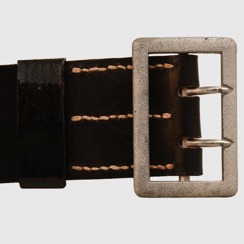 A very large size army officers belt in black, the wide belts are normally associated with political or Luftwaffe officers, the black ones normally encountered are the narrower form, this is an unusual wide army officers belt. Maker marked ‘Gottlob Kurtz of Weisbaden. Nice white stitching, complete with its single runner.