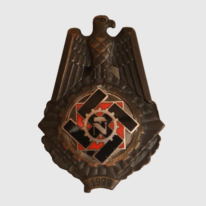 A rare cap for the organisation known as the RMBO, which was the ministry for the occupied territories, constructed in the brown colour of that organisation. Excellent nap to the cloth, no moth damage, stamped size ‘57’ to the upper inner crown lining. To the left side of the cap is an edelweiss flower on a lozenge pink background with matching background for the Bevo woven political silver eag... read more
